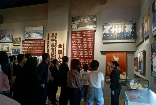 在莊嚴的紀(jì)念館序廳革命先輩浮雕前,全體黨員干部面對鮮紅的黨旗重溫了入黨誓詞。